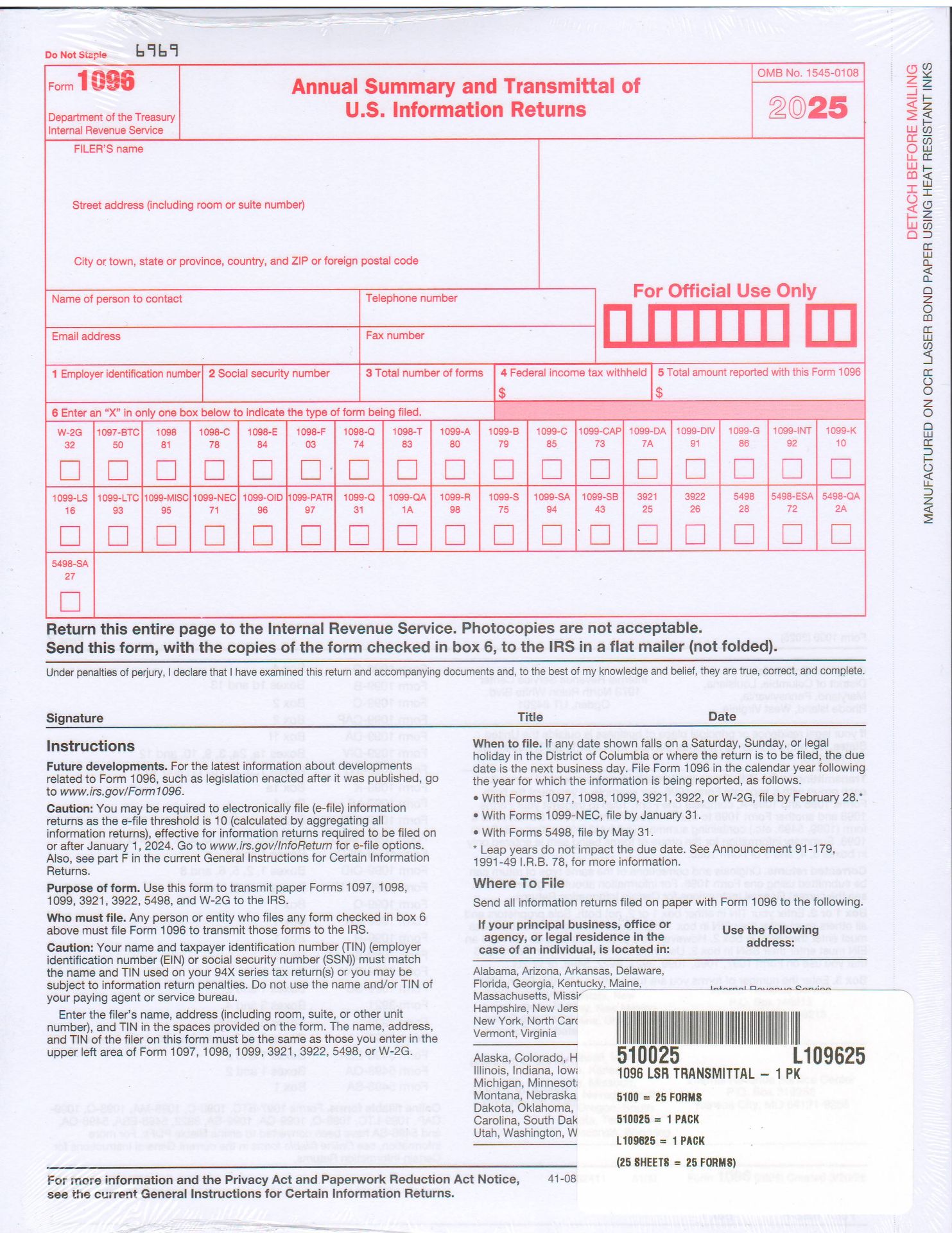 1 Unit = 75 Forms (25 Sheets 3-Up)