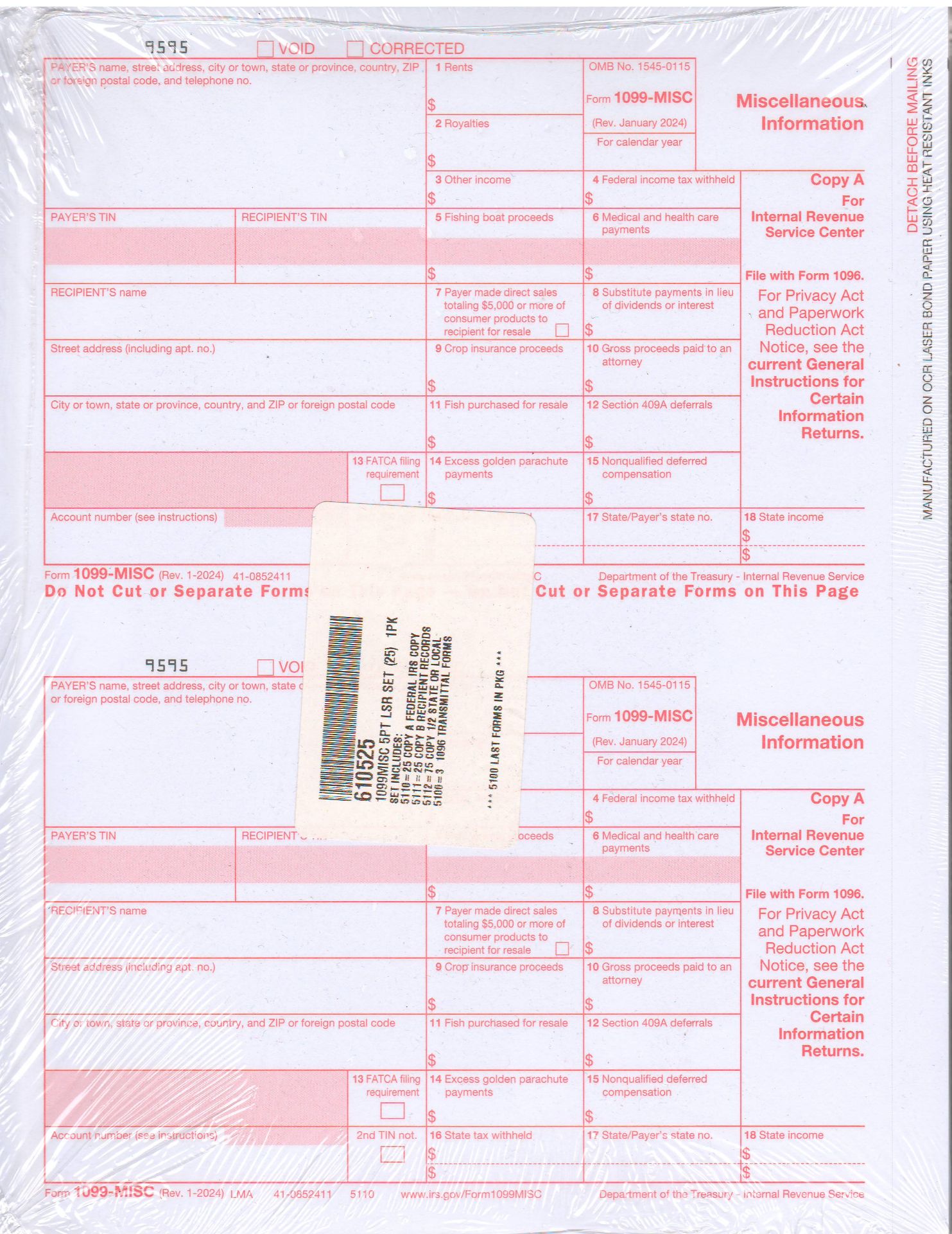 1099-MISC PRE-PACKAGE SET OF 5-PART PRINTED LASER FORMS / UPCOMING TAX YEAR (AS OF AUG. 1ST)