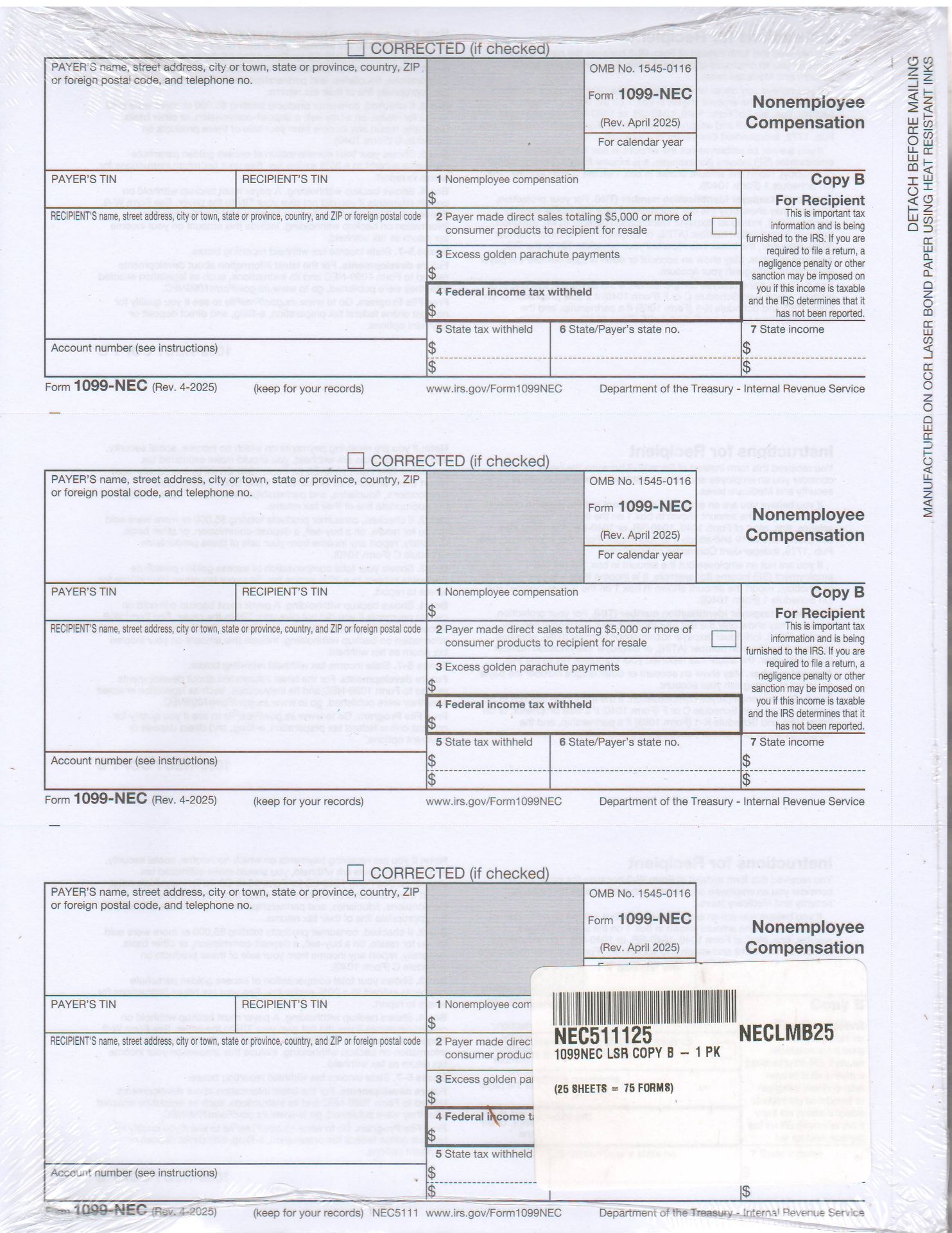NEC5111 | 1099-NEC Recipient Copy B 3-Up Format
