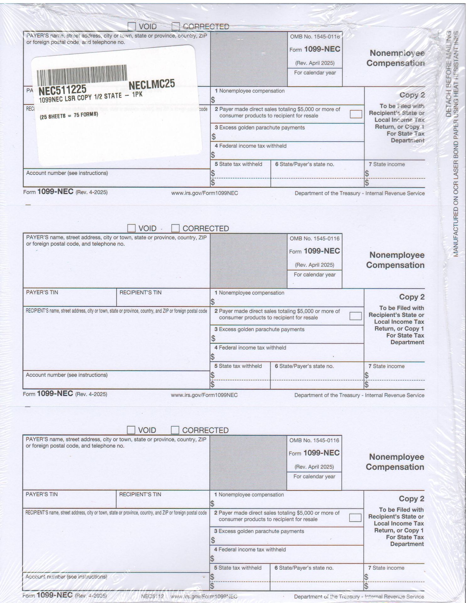 NEC5112 | 1099-NEC Payer or State Copy C 3-Up Format