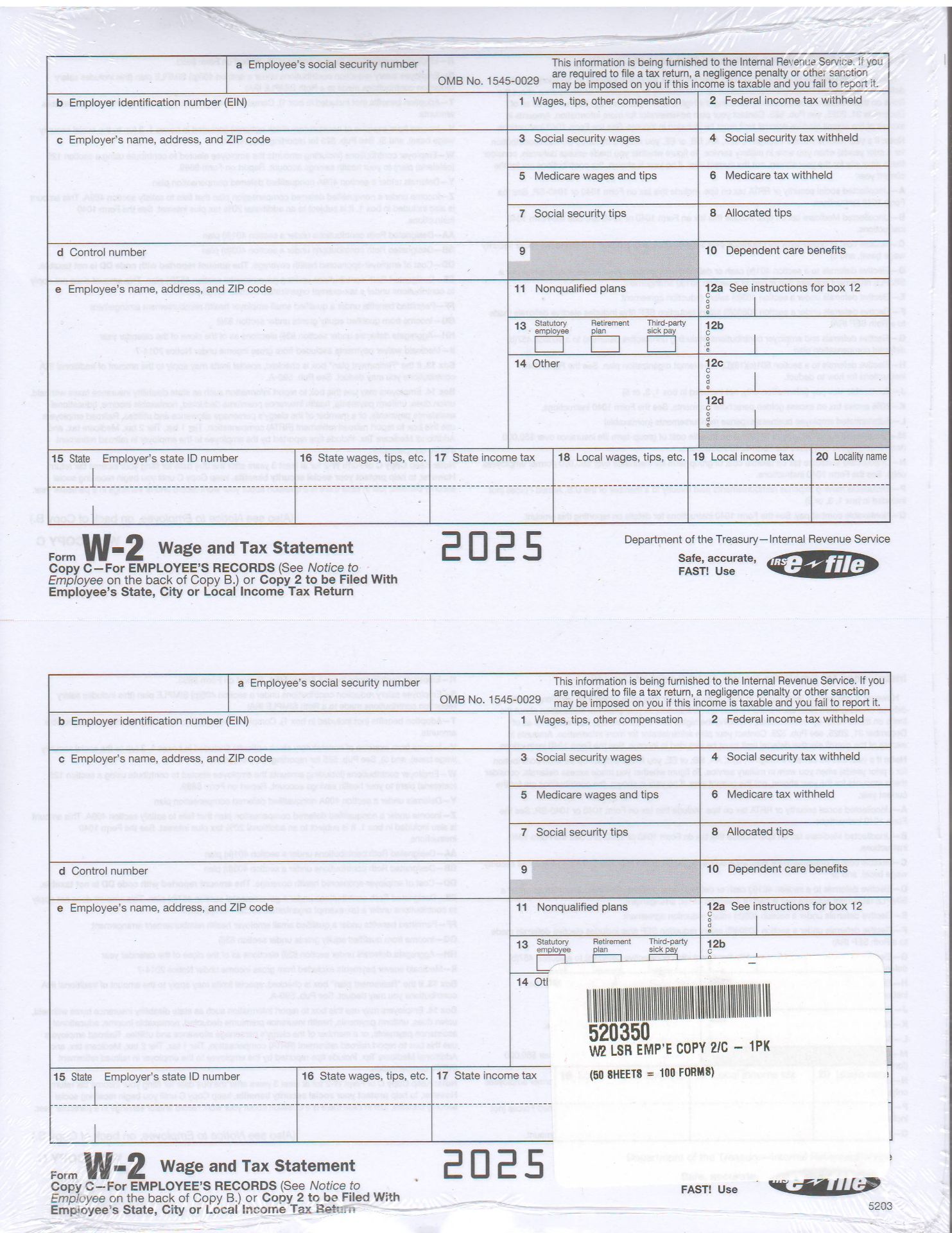 1 Unit = 100 Forms (50 Sheets 2-Up)