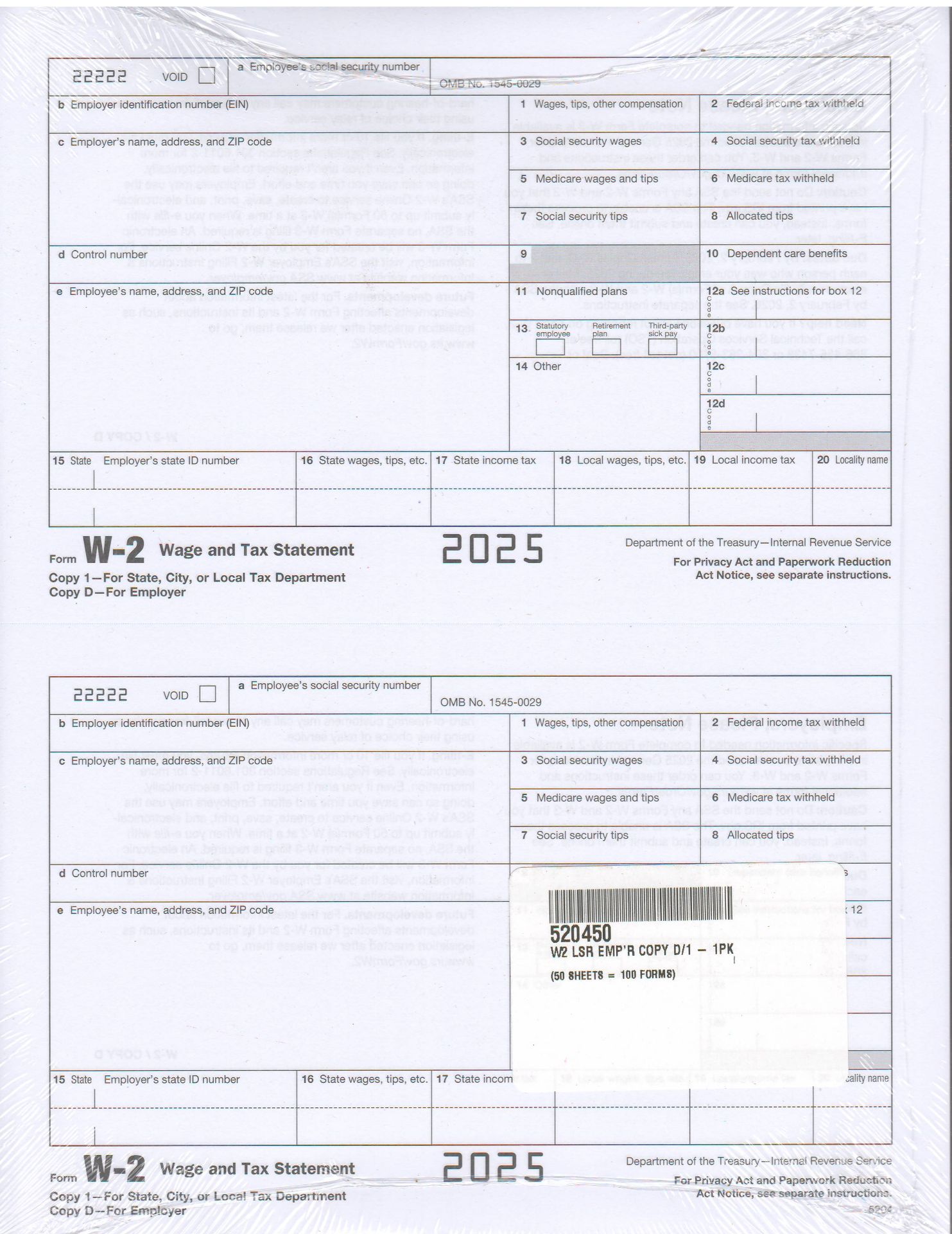 W-2 DOUBLE WINDOW ENVELOPES (FITS 2-UP FORM FORMAT)
