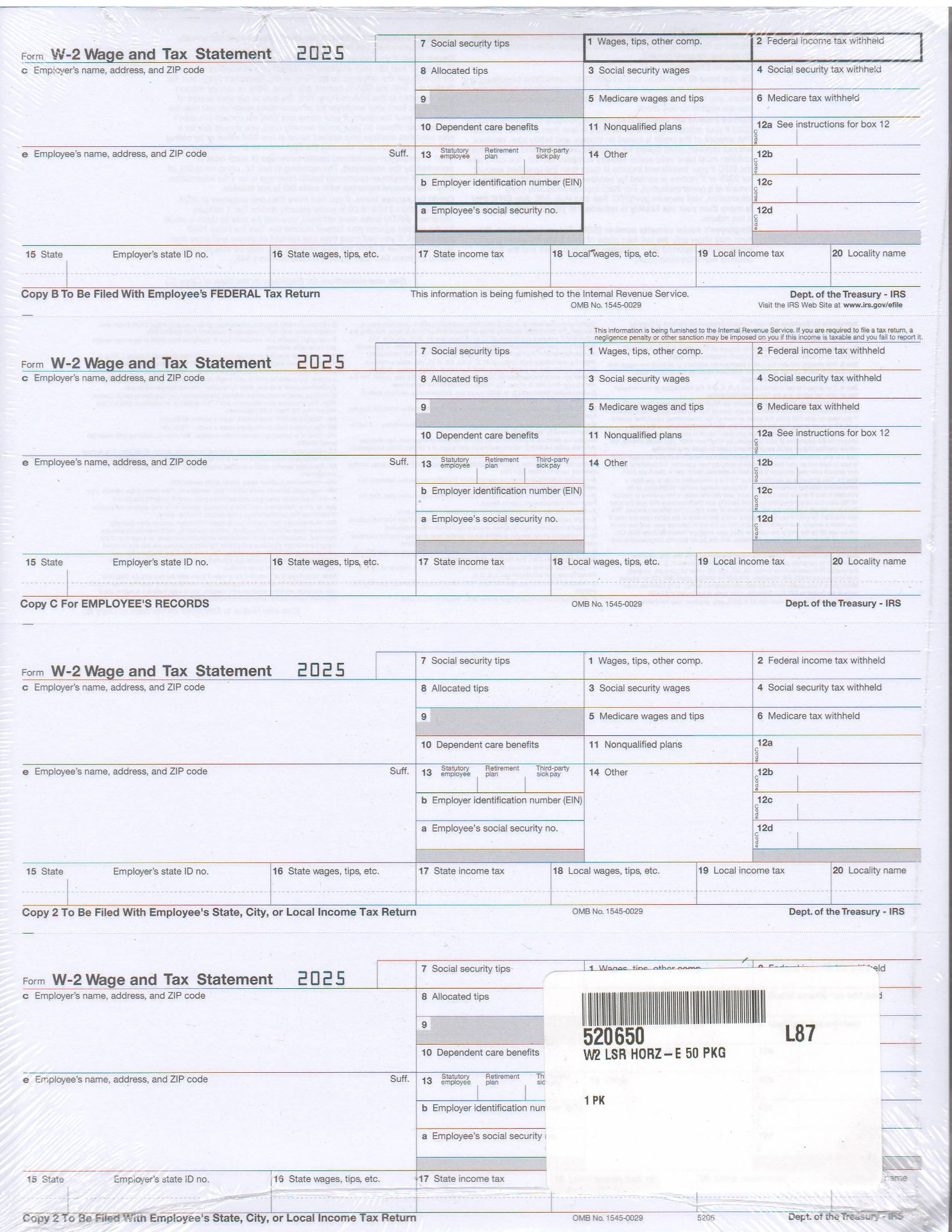 W-2 DOUBLE WINDOW ENVELOPES (FITS 4-UP HORIZONTAL FORMAT)